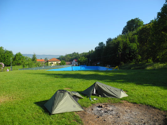 When we arrived at the site where we were supposed to find a camp site, according to google, we had to realize that this information might have been outdated. There was only a public swimming pool that had not opened yet for the season and a bar.