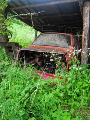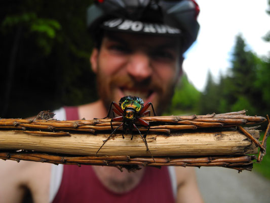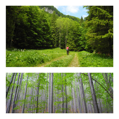 I startded the hike through a beautiful old forrest. Rosi and Arnold advised me to be quite noisy while hiking in order to let bears and boars know that I am coming and avoid a unpleasant