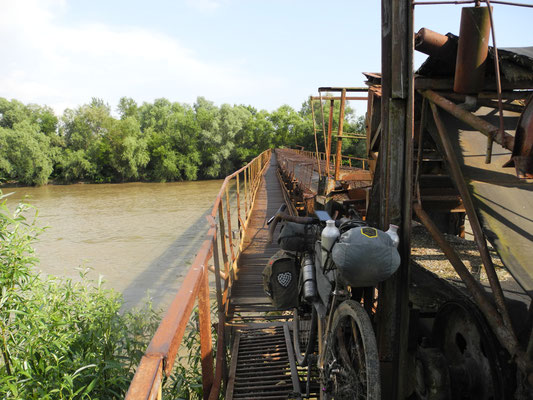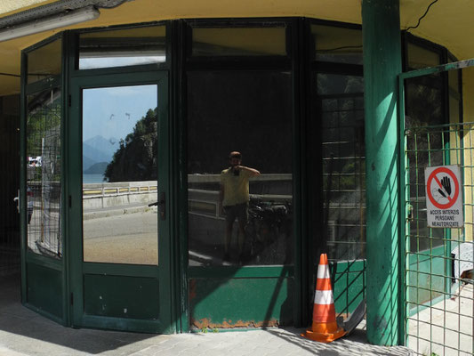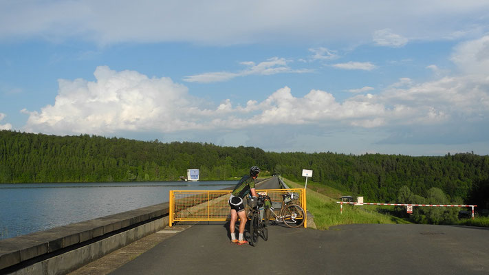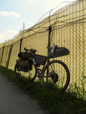 In order to save some time and km we illegaly crossed a dam. Getting on it was easy, in order to get off was a bit harder. We had to unpack the bikes and lift them over a gate.