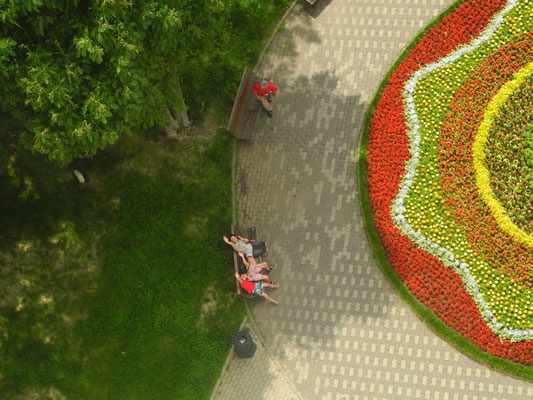 After a juicy lunch at a fancy local restaurant we took a nap in a park until a brief rain shower surprised us.