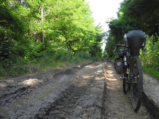 The search for our spot turned into a 2 h long shit show. This was because the lake shore proved to be very inaccessible, the forrest road was in parts unridable, dug up by deep tractor tracks