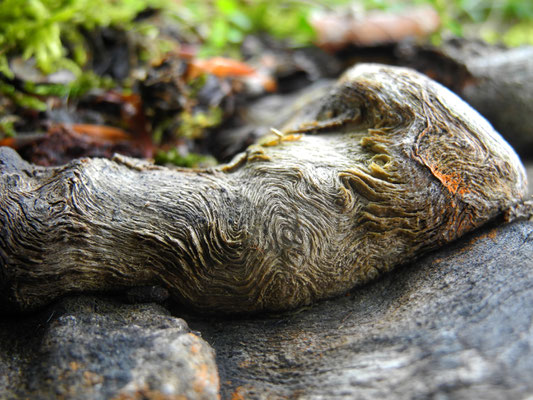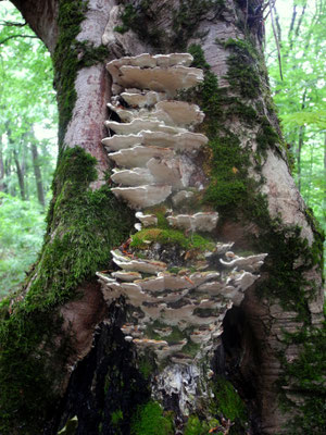 Arnold, Ursu and me started our mushroom hunt entering a narrow gorge that started right behind the camp site. On the way Arnold shared some knowledge about getting along in nature. He showed me